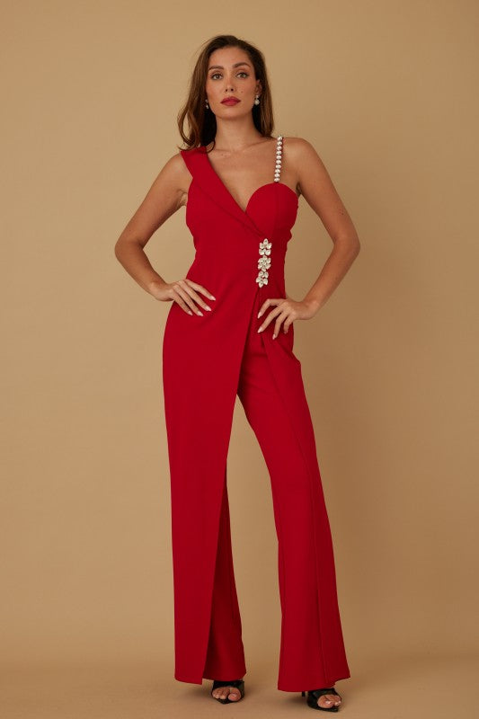 Open Slit Jewel Stone Detail Jumpsuit.