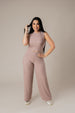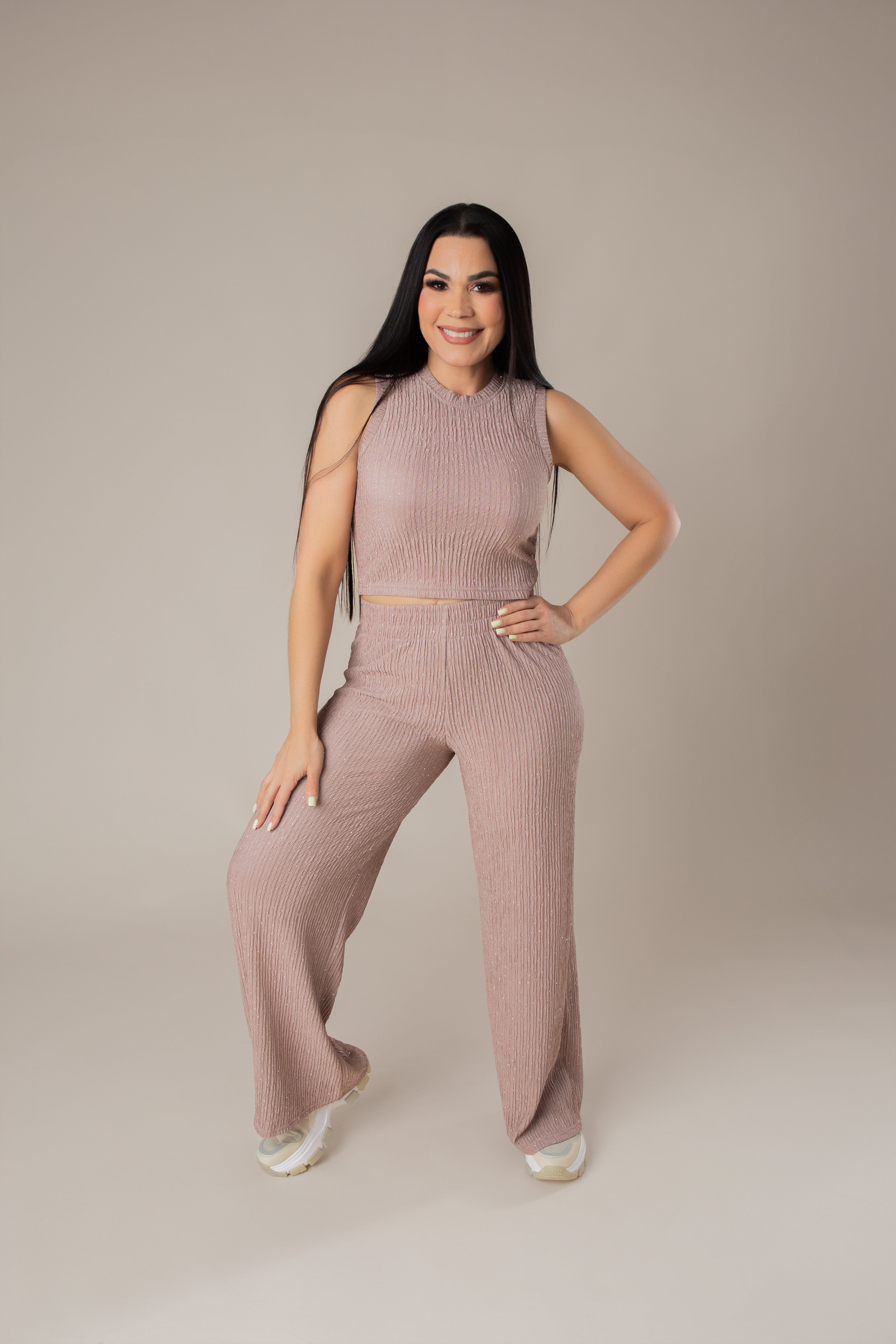 Crinkled Rhinestone Crop Top Loungewear Pant Set.