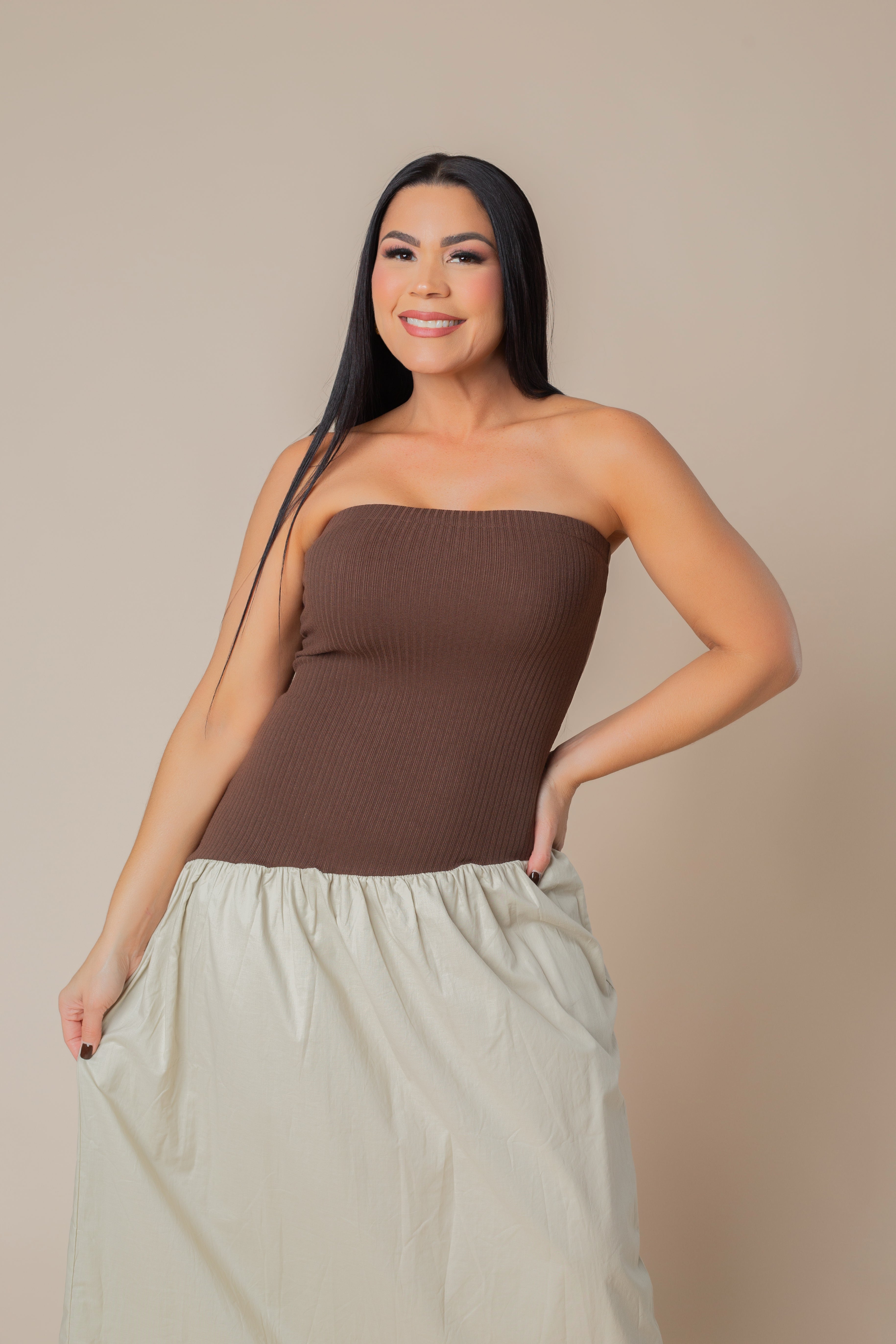 Ladies Knit Contrast Asymmetrical Draped Tube Dress.