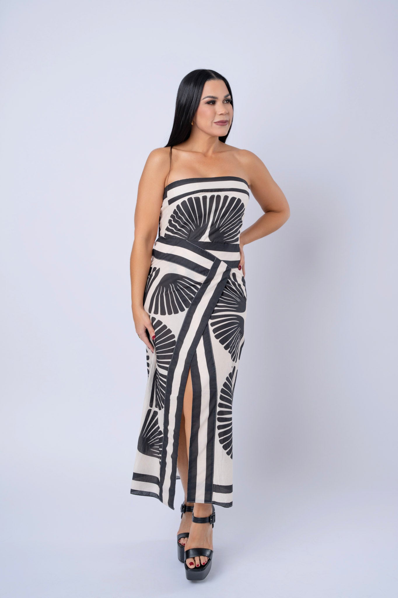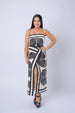 Printed Midi Sheath Dress With Elastic Back And Side Slit.