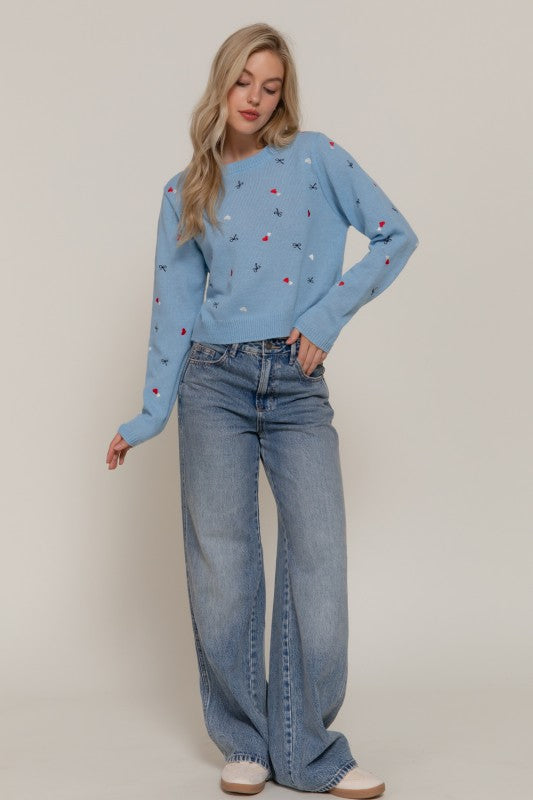 Long Sleeve Round Neck All Over Embroidery Sweater.