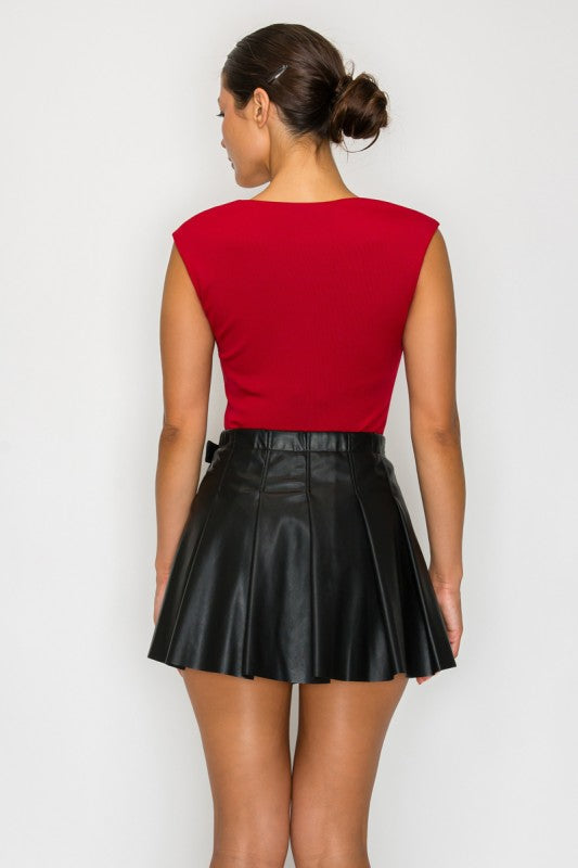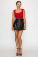 Bodysuit Top In A Solid Color Featuring A Square Neckline, Wide Shoulder Straps, And A Fitted Bodice.