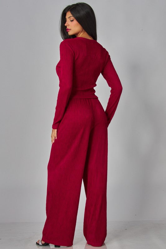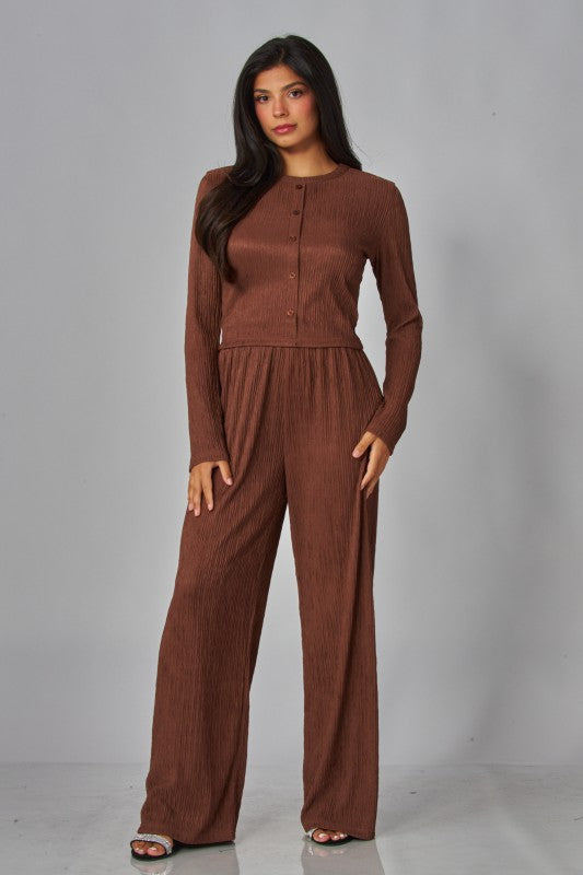 Crinkled Plisse Button Down Round Neck .