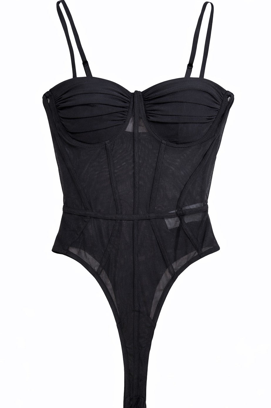 Mesh Ruched Bra Corset Bodysuit.
