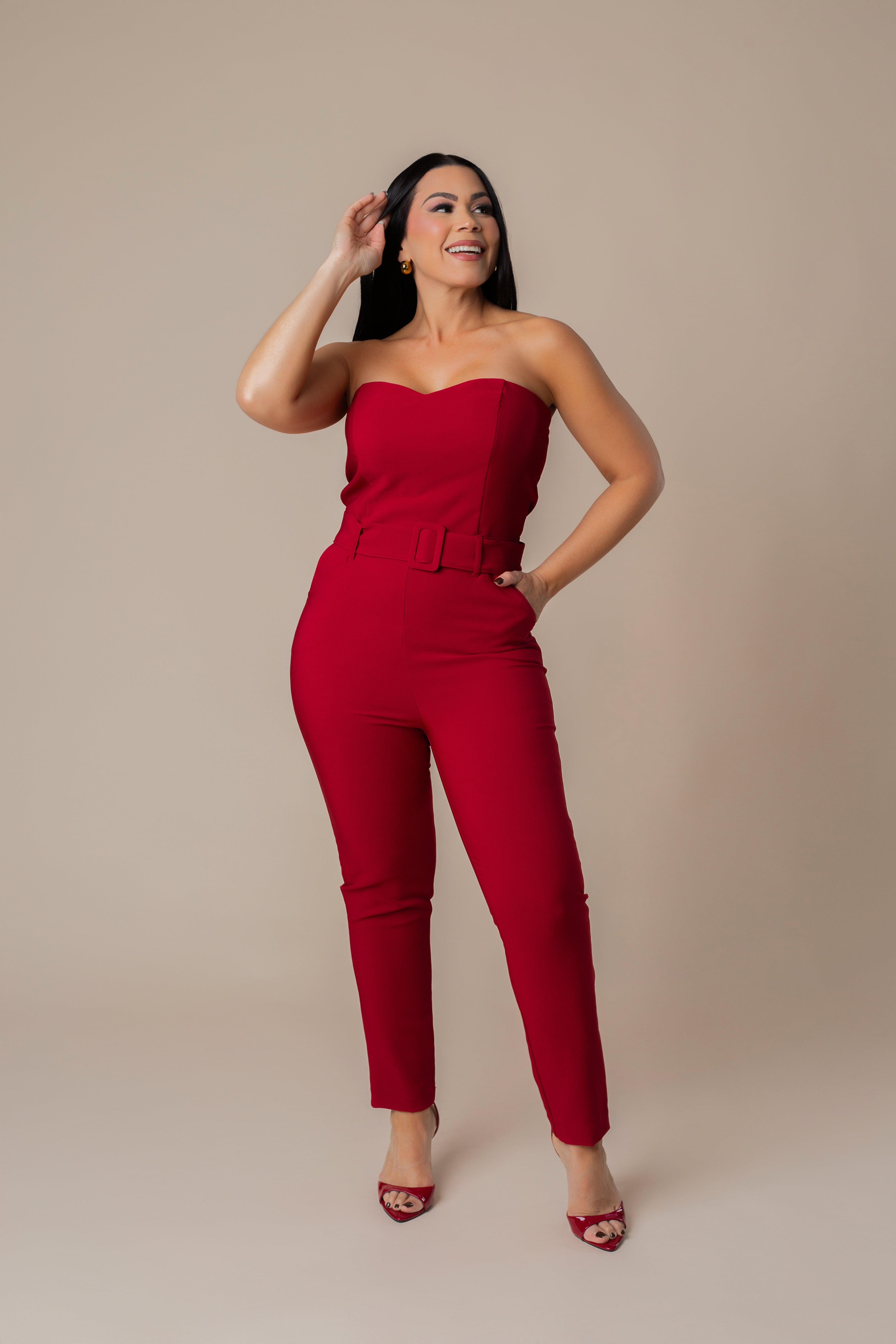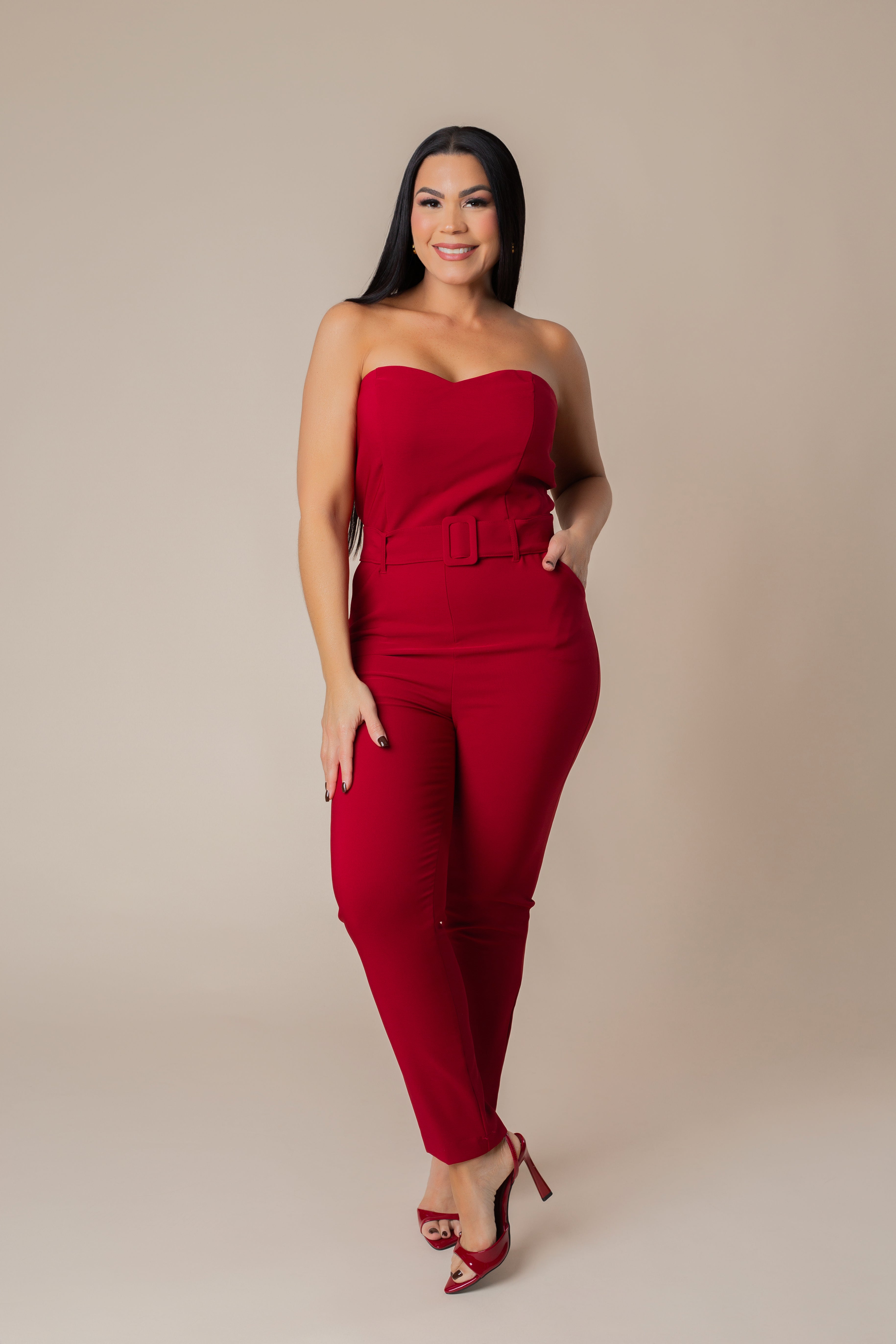 Square Buckled Bustier Jumpsuit.