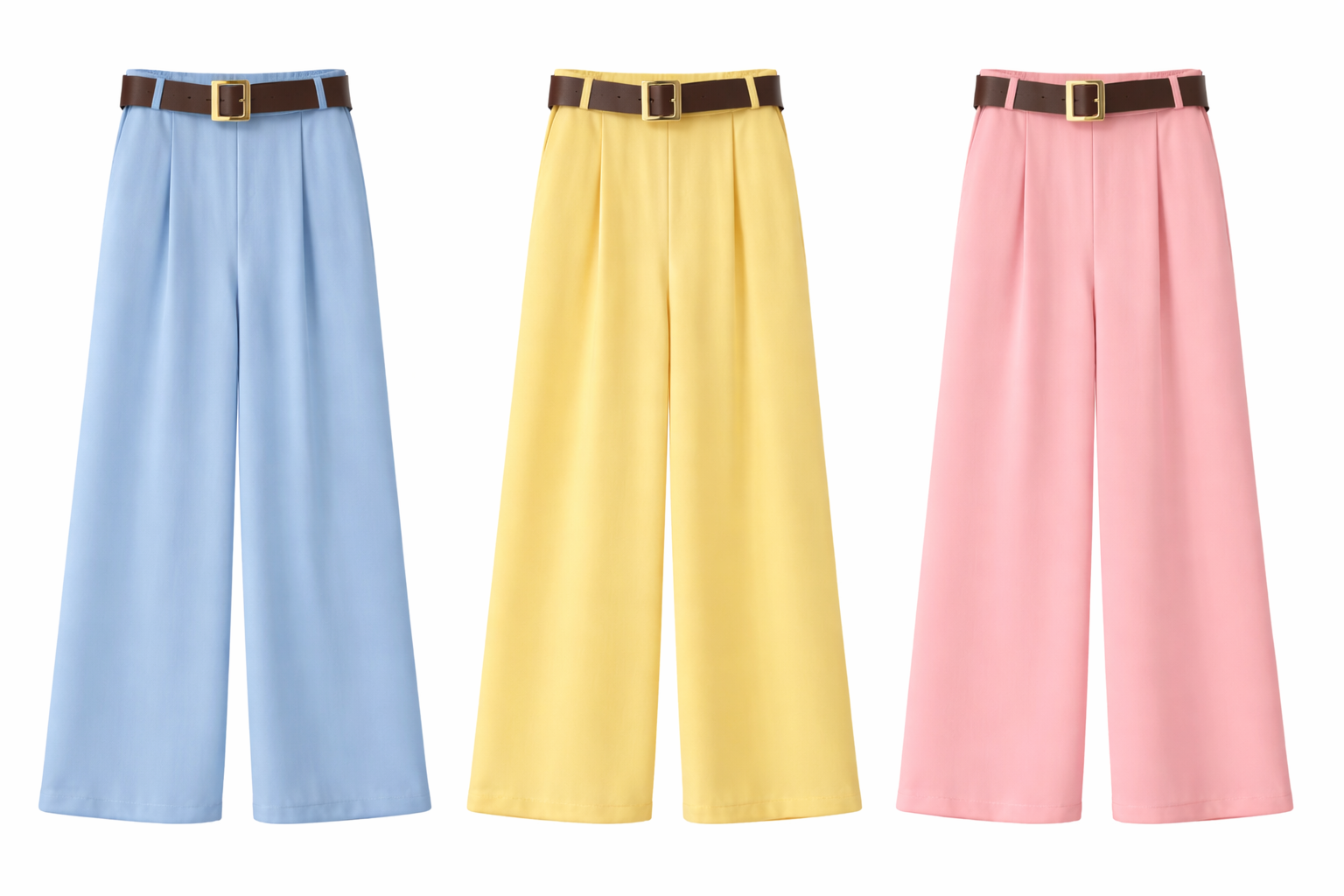 Wide-Leg Trousers With Belt, High Rise, Elasticated Waist, Belt Loops With Removable Belt, And Side Pockets.